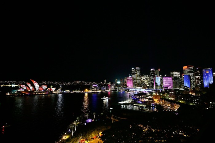 Kota Sydney di Australia juga menjadi salah satu destinasi favorit warga dunia. Pasalnya di bulan Mei hingga Juni diselenggarakan festival lampu yang dikenal dengan nama Festival Vivid Sydney. Bangunan ikonik, Sydney Opera House semakin menawan dengan hiasan lampu yang ditampilkan selama festival tersebut. Mark Metcalfe/Getty Images.