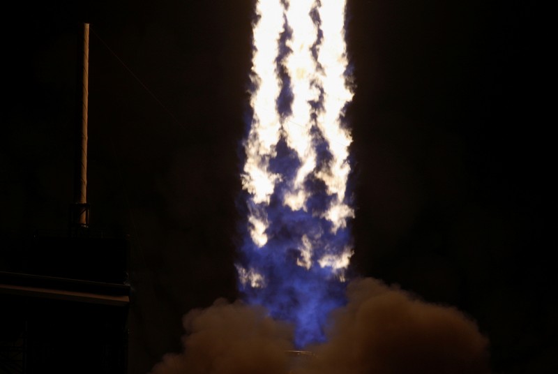 Api dari mesin roket tampak berkobar-kobar. Foto: Reuters