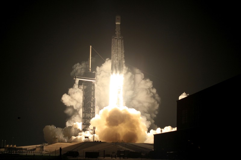 SpaceX menyebutkan Falcon Heavy dapat mengangkat beban sampai 27 metrik ton. Foto: Reuters