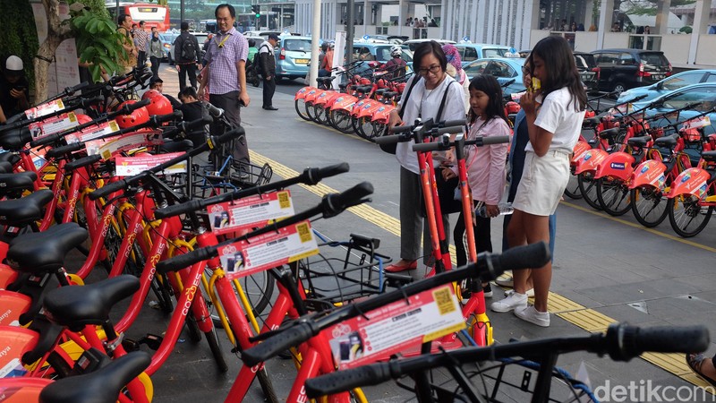 Masyarakat tampak antusias melihat dan ingin mencoba sepeda dan otopet listrik bernama 'GoWes' yang masih digratiskan hingga Sabtu (29/6) besok di Jalan MH Thamrin.