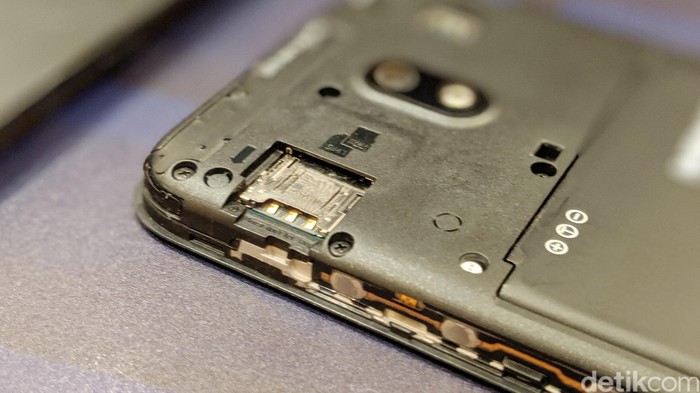 Ponsel ini mendukung dual SIM dan microSD. (Foto: detikINET/Adi Fida Rahman)