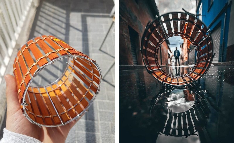 Konsep yang sama namun menggunakan benda berbeda. Ketika menggunakan semacam wadah peniris alat makan ini, namun tanpa penampang, efek yang dihasilkan tampak lebih dramatis. Foto: Instagram/jordi.koalitic