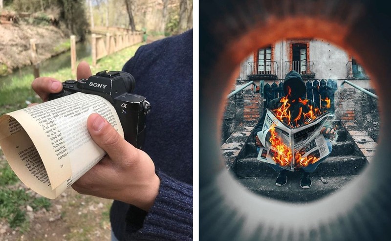 Fotografer Jordi Puig kerap membagikan hasil kreasi di media sosial Instagram miliknya. Salah satu yang menarik perhatian adalah teknik framing menggunakan benda di sekitarnya. Seperti menggunakan kertas ini. Foto: Instagram/jordi.koalitic
