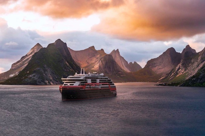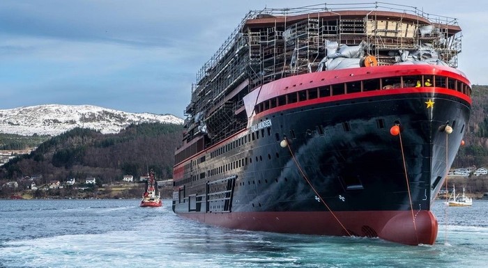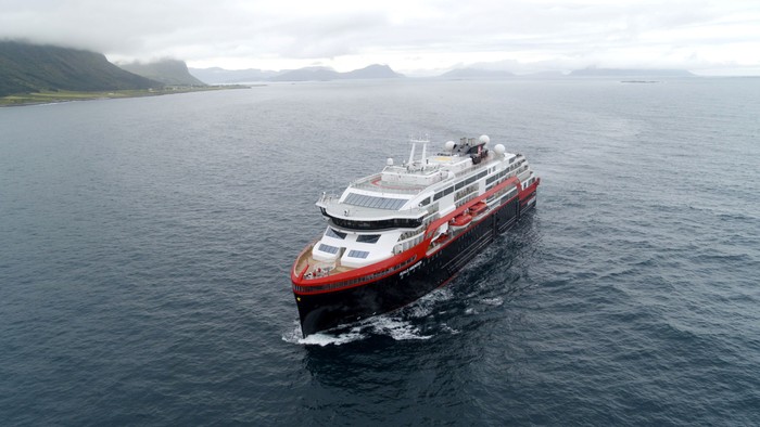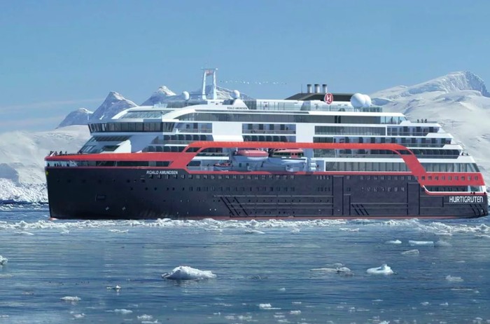 MS Roald Amunsen dibuat di Norwegia dan dalam pelayaran perdananya. Foto: Reuters