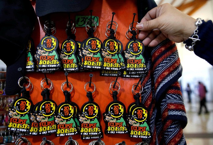 Gantungan kunci bertema gerhana. Foto: Reuters