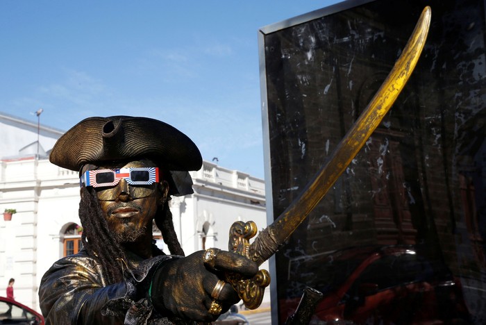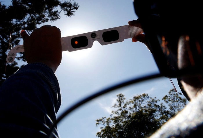 Warga pun telah menyiapkan kacamata khusus agar tidak rusak penglihatan saat melihat gerhana. Foto: Reuters