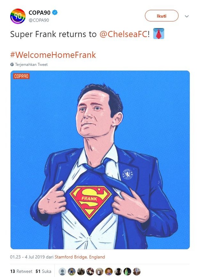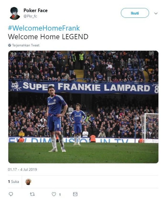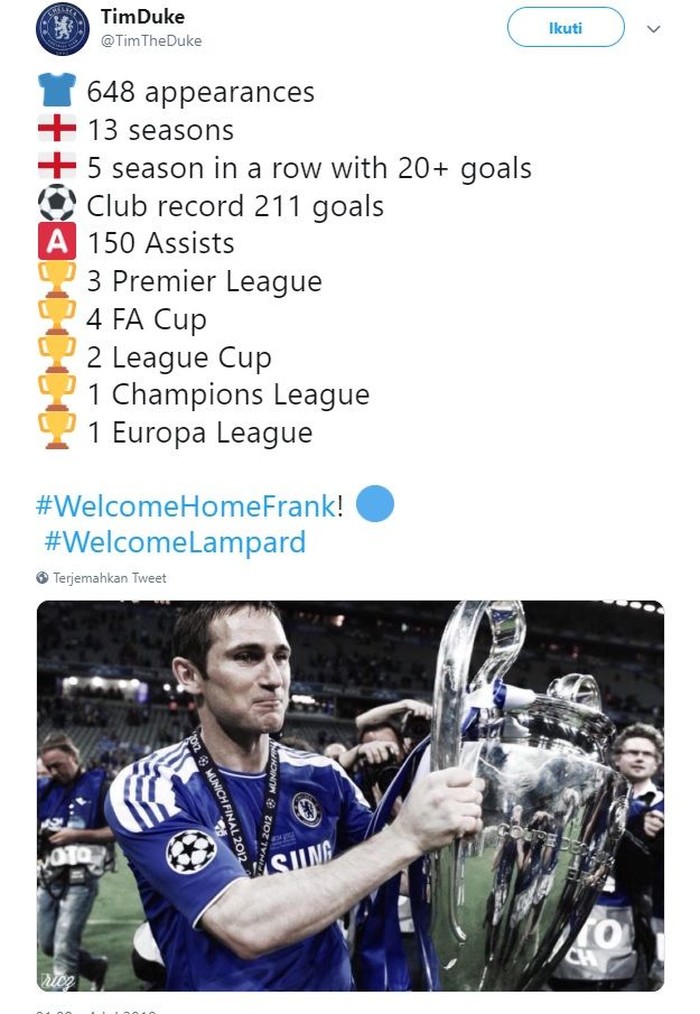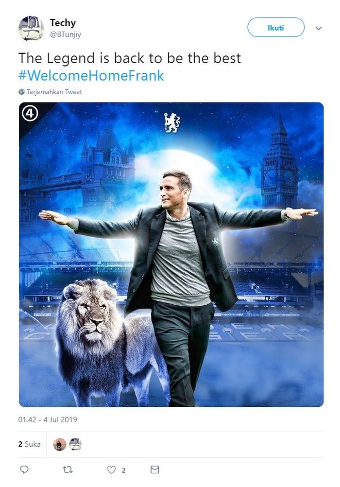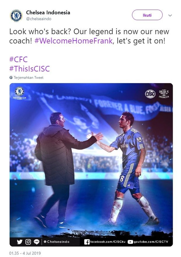 #WelcomeHomeFrank jadi tagar untuk menyambut Lampard jadi jadi pelatih anyar Chelsea. Foto: Istimewa