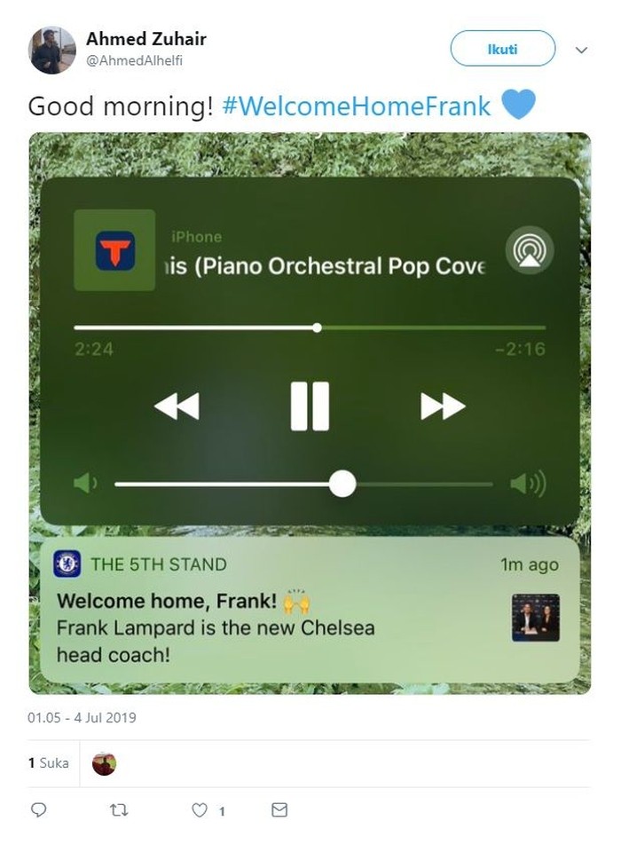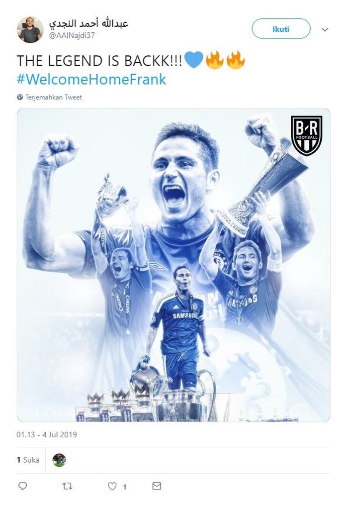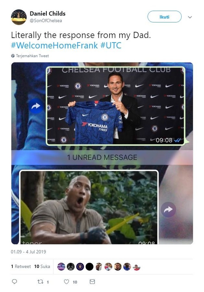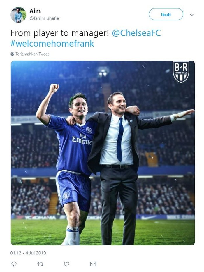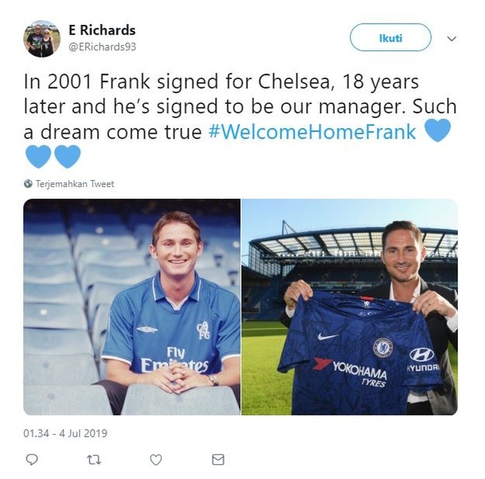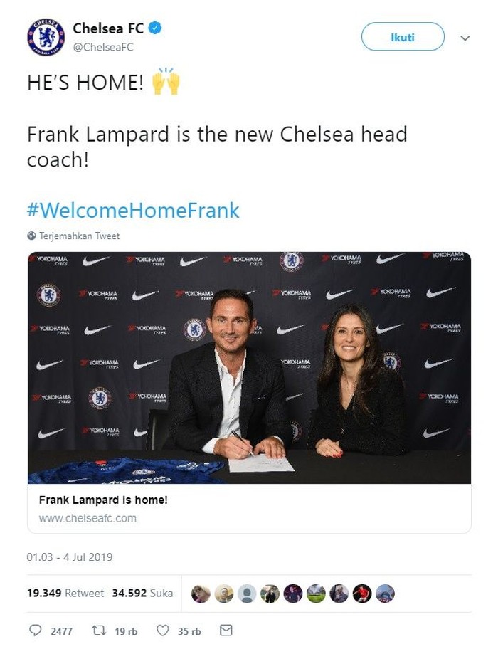 #WelcomeHomeFrank jadi tagar untuk menyambut Lampard jadi jadi pelatih anyar Chelsea. Foto: Istimewa