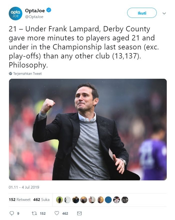 Lampard gemar memainkan para pemain muda saat jadi pelatih Derby County. Foto: Istimewa