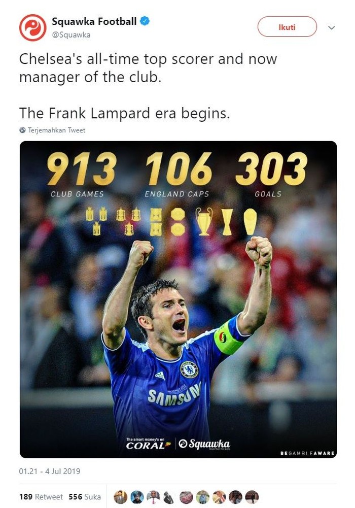 Netizen Sambut Frank Lampard Jadi Manajer Baru Chelsea