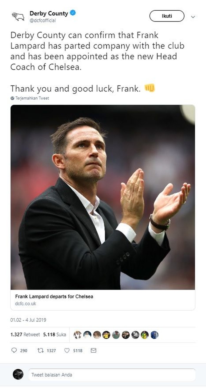 Jakarta - Frank Lampard kembali lagi ke Chelsea. Kali ini Lampard datang untuk menjadi manajer baru The Blues. Netizen pun ramai menyambut sang legenda klub itu.