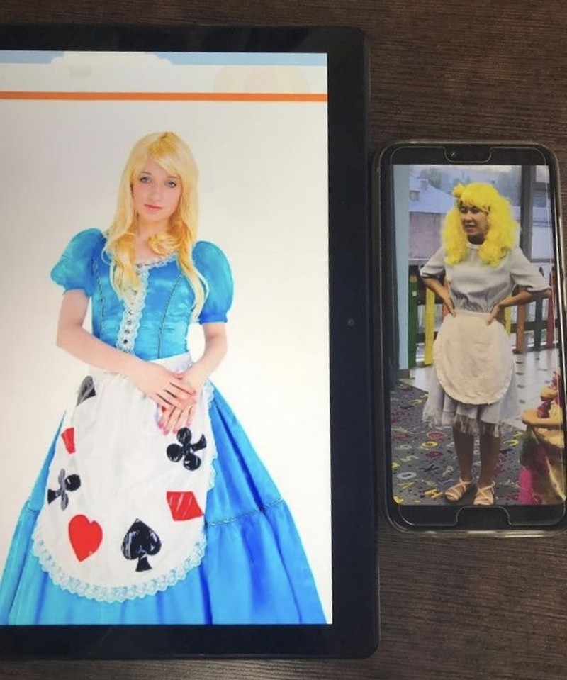 Maksudnya sih beli kostum itu biar seperti jadi seperti Disney Princess. Tapi barang yang diterima, dan dipakai, jauh berbeda. (Foto: Reddit via Brightside)