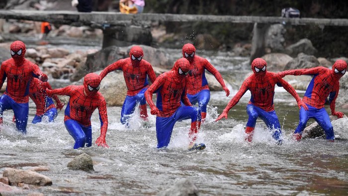 Ini bukan Spider-ManΒ sedangΒ memakai jurus Naruto, melainkan para cosplayer di sebuah festival di China. (Foto: Yang Huafeng/CNS via REUTERS)