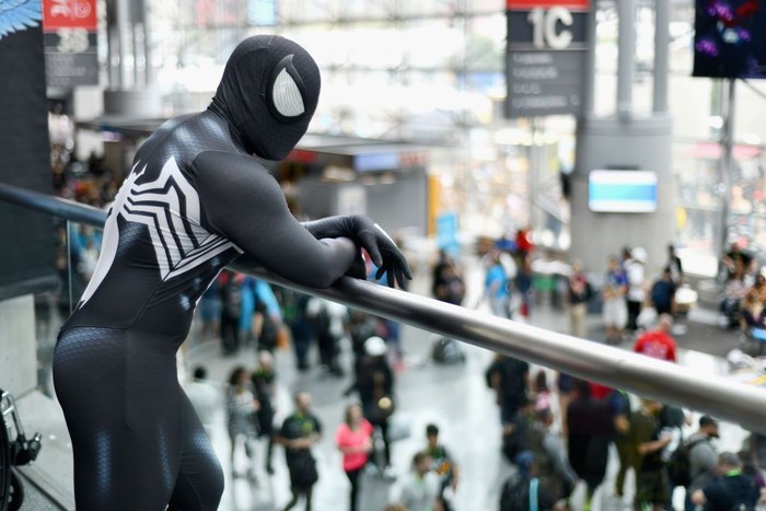 Spider-Man jadi salah satu sosok yang rutin jadi pilihan cosplayer diΒ ajang-ajangΒ Comic Con. Salah satunya yang memakai toga ini. (Foto: Jason Kempin/Getty Images)
