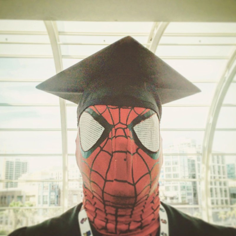 Spider-Man ini bukan kehabisan jaring laba-laba melainkan cuma gaya dari cosplayer di Comic Con 2018. (Foto: Dia Dipasupil/Getty Images)