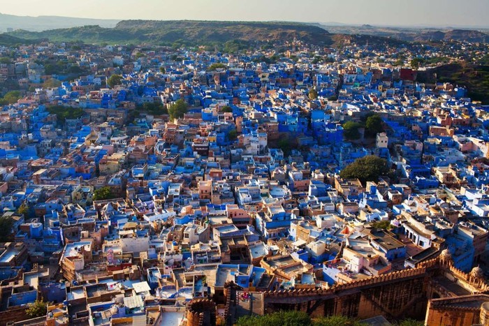 Pemandangan memukau Kota Jodhpur di India. Kota ini dijuluki sebagai Kota Biru karena warna tersebut nampak menghiasi dinding hingga atap bangunan di kota itu. K M Asad/Getty Images.