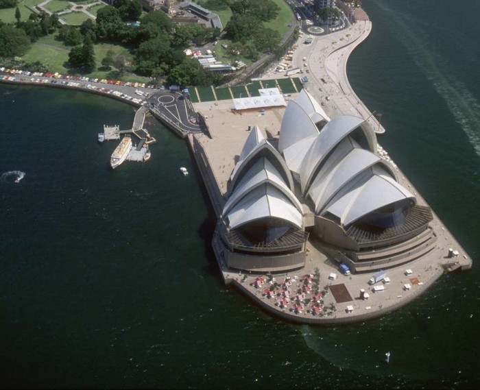 Salah satu bangunan paling terkenal dan khas abad ke-20 yaitu Sydney Opera House yang berada di Australia. Sygma/Getty Images.