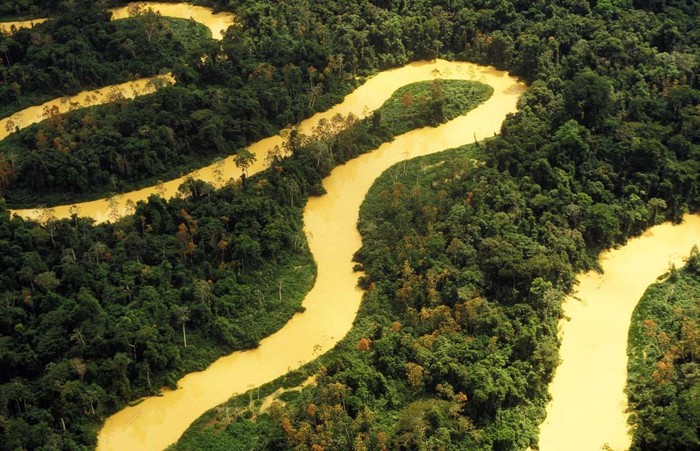 Pemandangan Hutan Amazon saat dipotret dari udara. Hutan yang berada di Brasil ini diketahui memiliki luas mencapai 7 juta kilometer persegi. Ricardo Funari/Getty Images.