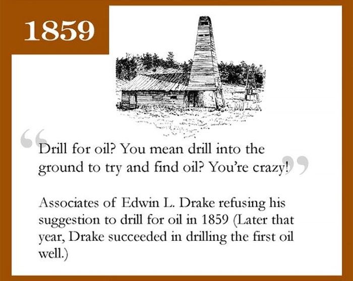 Pengeboran Minyak: Mengebor untuk minyak? Maksud kalian mengebor ke bawah tanah untuk mencoba menemukan minyak? Kalian gila. Foto: infographicity