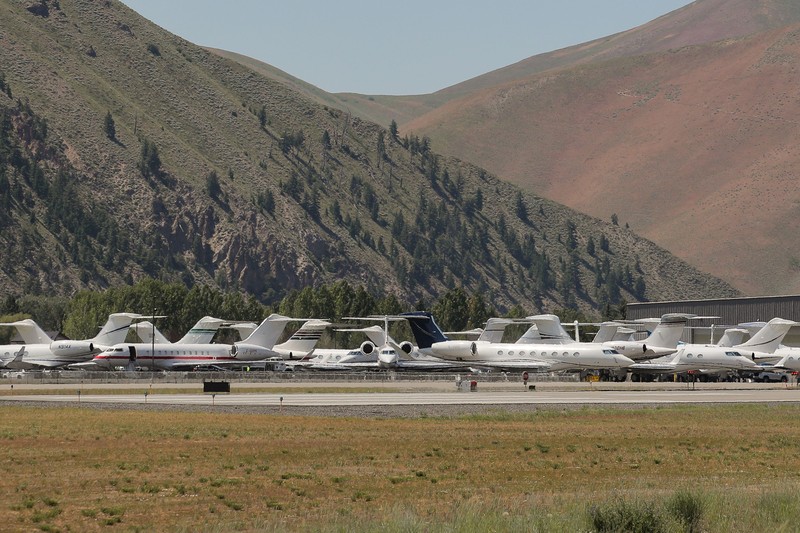 Deretan pesawat pribadi para miliuner di dekat tempat acara. Foto: Reuters