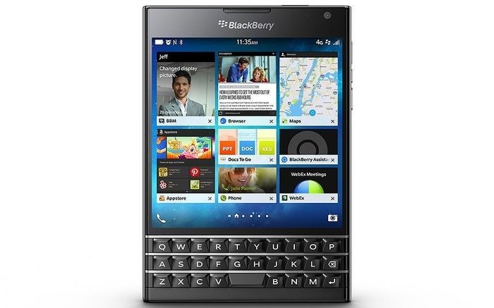 BlackBerry Passport ini termasuk ponsel flagship dengan bentuk kotak aneh serta keyboard memanjang di bawahnya. Foto: Telegraph