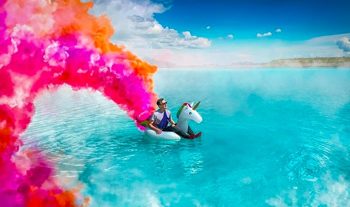 "Anda tidak bisa berenang di sana. Airnya memiliki alkalin tinggi. Kontak kulit dengan air semacam itu bisa menimbulkan reaksi alergi," tambah perusahaan tersebut. Foto: Instagram