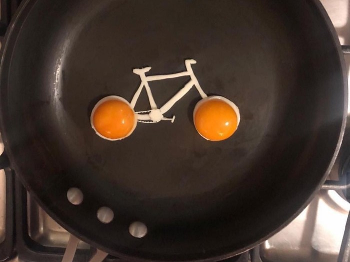 Sepeda dengan kuning telur sebagai rodanya. Foto: Instagram/the-eggshibit