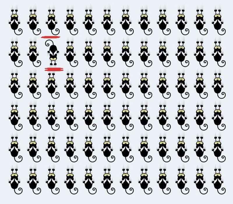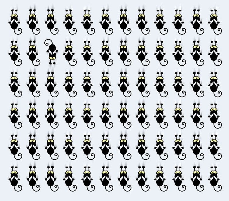 Temukan satu gambar kucing yang berbebeda posisi. (Foto: Brightside)