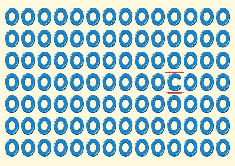 Temukan huruf C diantara puluhan huruf G. (Foto: Brightside)