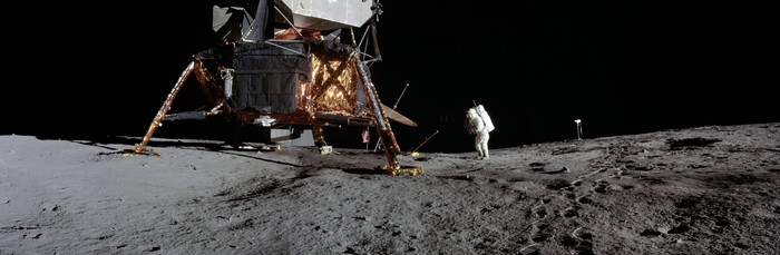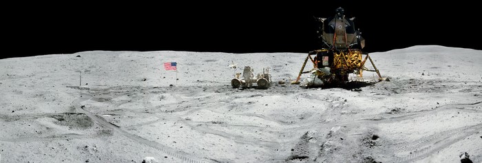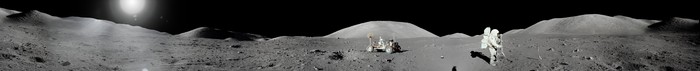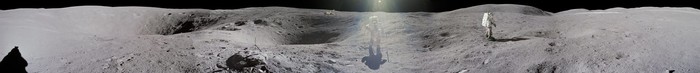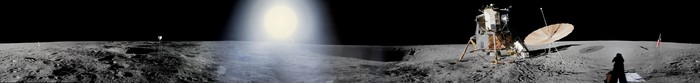 Dalam membuat foto-foto panorama ini, para ahli di fasilitas NASA bernama Johnson Space Center 'menjahit' gambar-gambar yang diambil ketika para astronot mendarat di Bulan. Foto: NASA