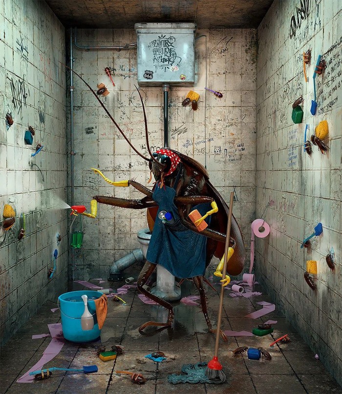 Kecoa membersihkan toilet. Foto:Β Cristian Girotto