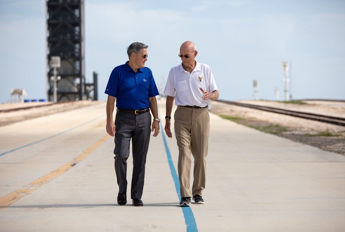 Mereka tampak berbincang. Trump mencanangkan NASA dapat kembali ke Bulan pada 2024. Foto: Getty Images