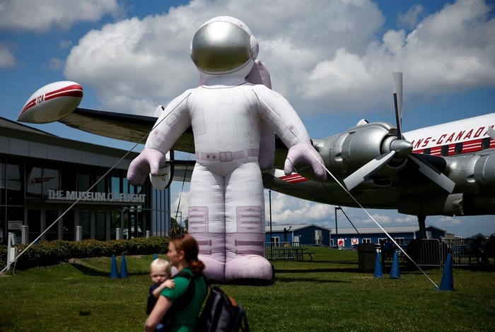 Sebuah balon astronot ukuran besar menyemarakkan 50 tahun peringatan mendarat di Bulan oleh Amerika Serikat. Foto: Reuters