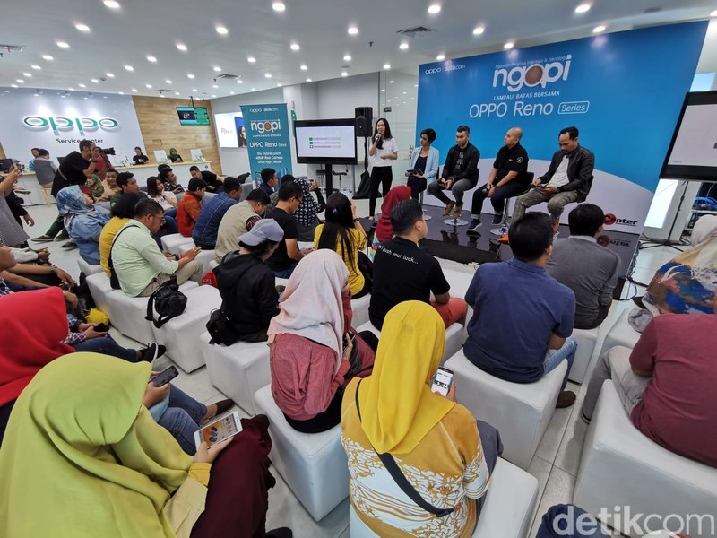Bertempat di Supermall Karawaci, Tangerang Selatan, Sabtu malam (20/7/2019) puluhan peserta Ngopi detikINET dengan tema 'Lampaui Batas Bersama Oppo Reno Series', merasakan keunggulan di ponsel anyar Oppo tersebut. (Foto: Agus Tri Haryanto/detikINET)