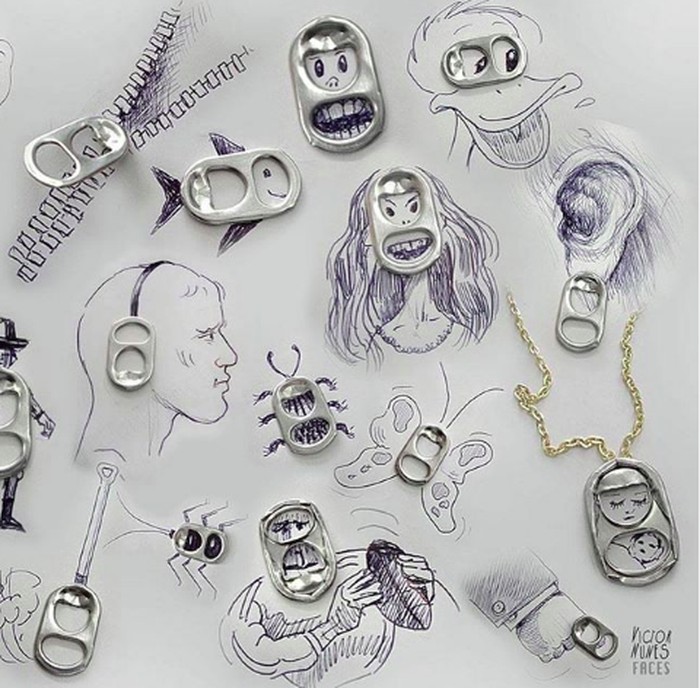 Ia memadukan alat-alat sederhana lalu menciptakan gambar wajah. Seperti dari penutup minuman kaleng ini. (Foto: Instagram/victornunesfaces)