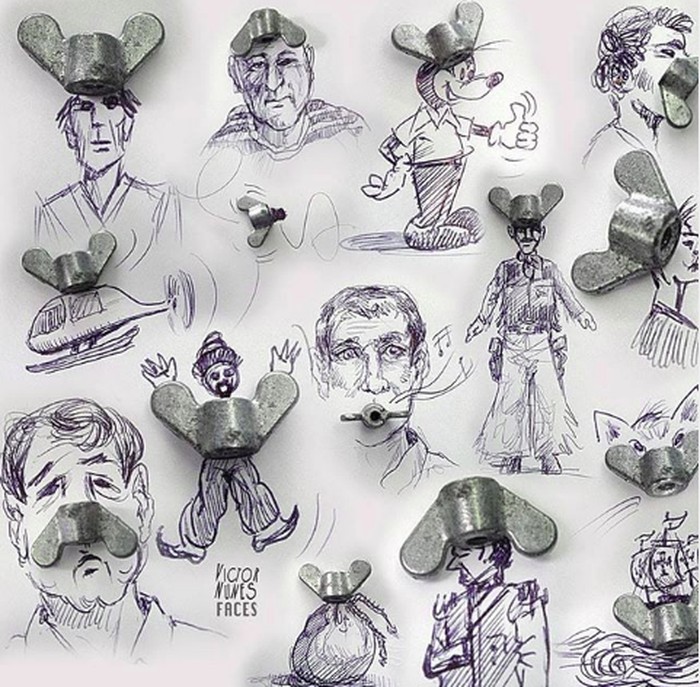 Victor Nunes, lewat akun Instagramnya, dia berbagi ciptaan karyanya dari alat-alat rumah tangga. (Foto: Instagram/victornunesfaces)IaΒ