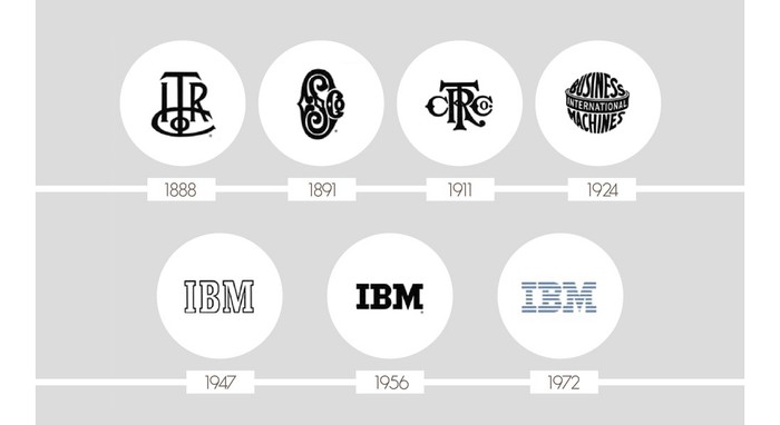 PerubahanΒ logo IBM dari tahun ke tahun.Β (Foto: via Octa-Digital)