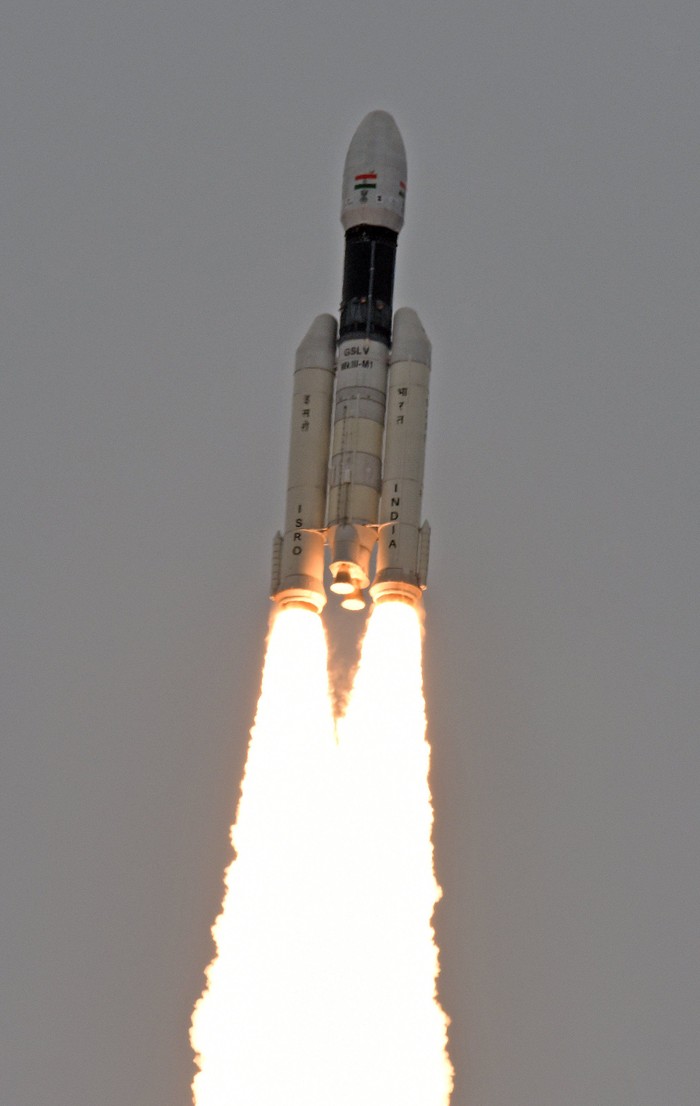 Dalam bahasa Sanskerta, Chandrayaan berarti kendaraan Bulan. Misi ini awalnya dijadwalkan meluncur pada 15 Juli, tapi ditunda hanya 56 menit sebelum mengangkasa karena masalah teknis.Β Foto: ISRO