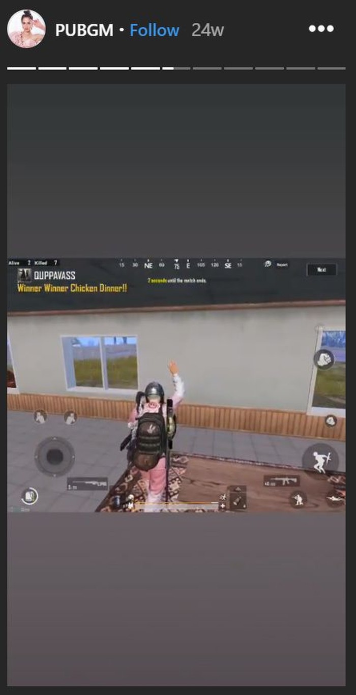 Perayaan Pevita saat Chicken Dinner. Momen ini ia unggah di stories Instagram miliknya. Foto: instagram.com/pevpearce