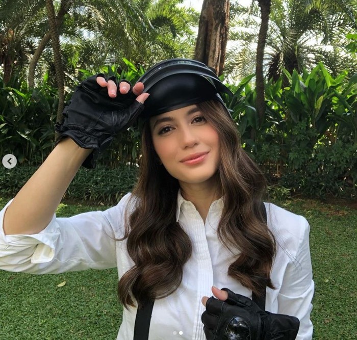 Pevita memakai helm level 3. Foto: instagram.com/pevpearce