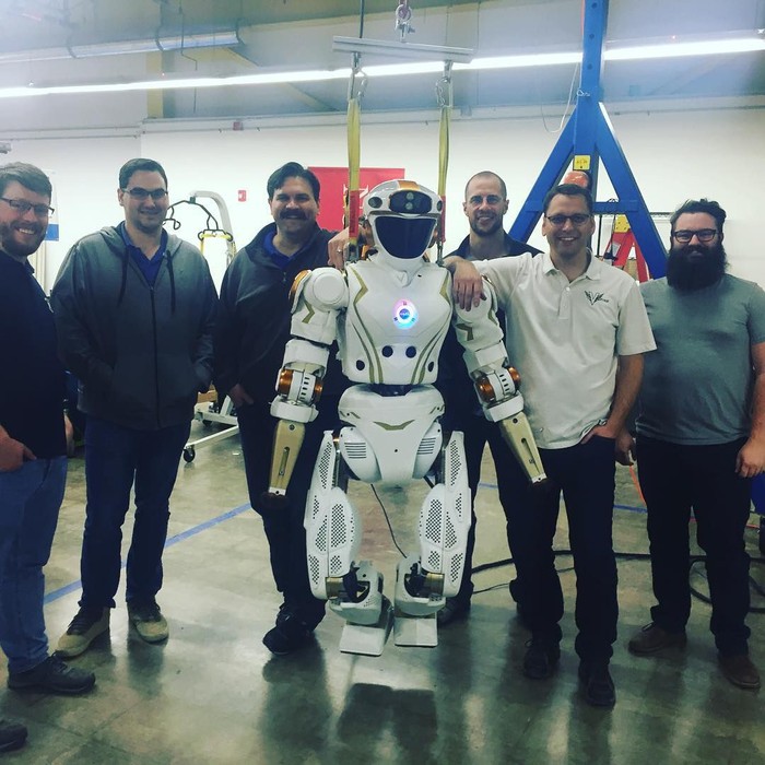 Foto "keluarga" Valkyrie bersama para sosok yang membidani "kelahirannya". (Foto: Instagram @nasa.valkyrie.robot)