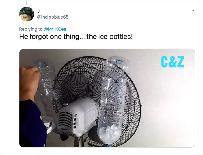 Salah satu trik netizen dalam mengakali udara panas. Foto: Twitter