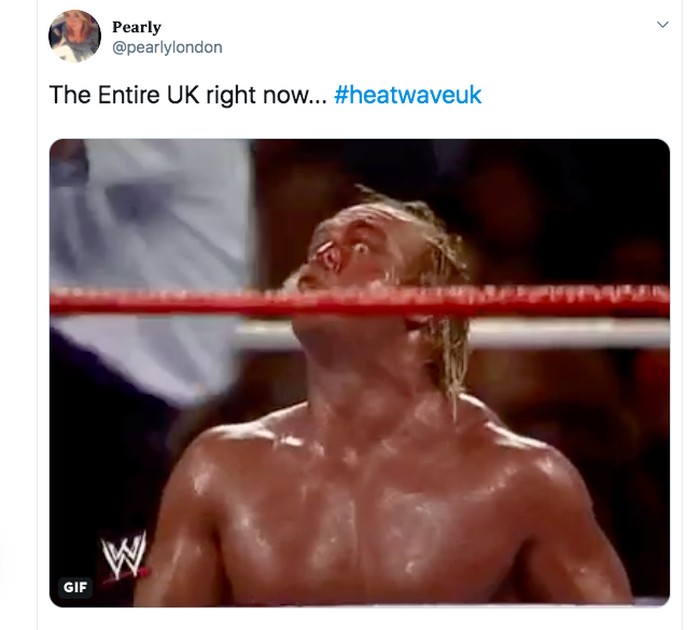 Mungkin banyak warga Inggris mandi keringat ala Hulk Hogan ini. Foto: Twitter