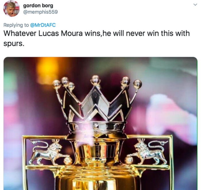 Netizen ini menilai apapun yang dimenangkan Moura, dia tidak akan meraih trofi Liga Inggris bersama Spurs. Foto: Twitter
