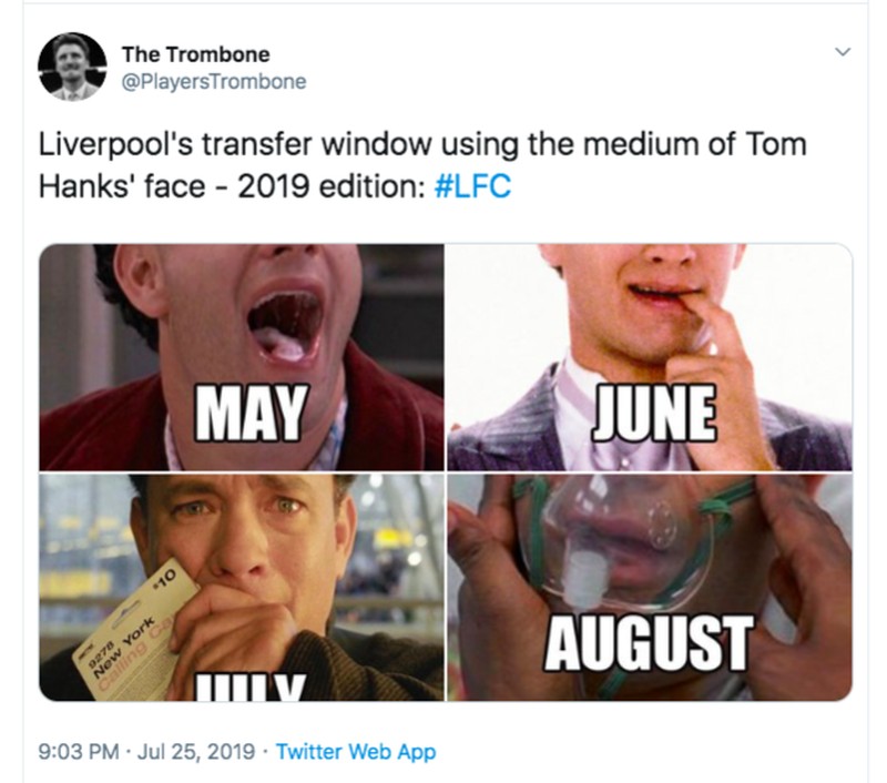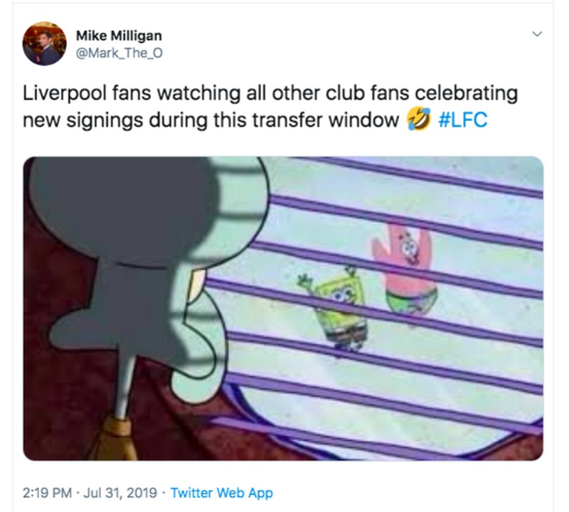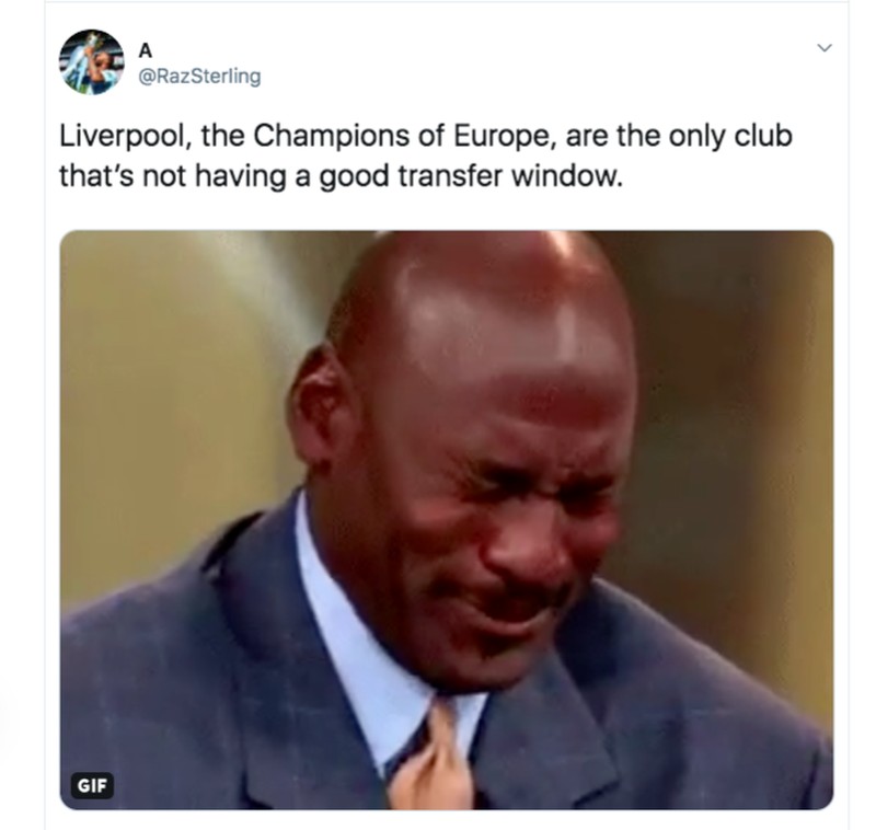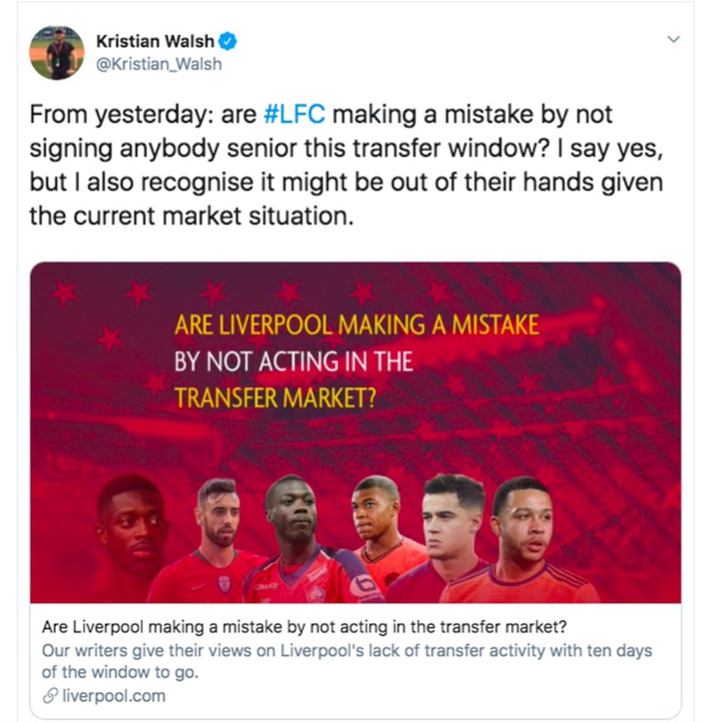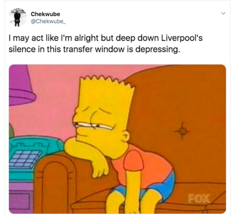 "Saya mungkin terkesan baik-baik saja, tapi diamnya Liverpoo di transfer windows adalah menyedihkan," tulis netizen ini. Foto: istimewa