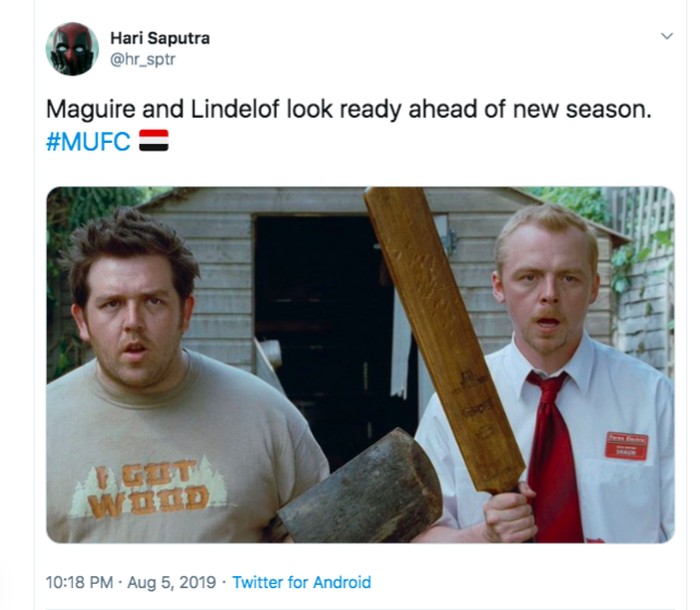 Harry Maguire hampir pasti menjadi pilihan utama di jantung pertahanan MU bersama Victor Lindelof. Netizen yang fans MU ini yakin striker lawan akan pusing menghadapi dua bek tersebut. Foto: istimewa