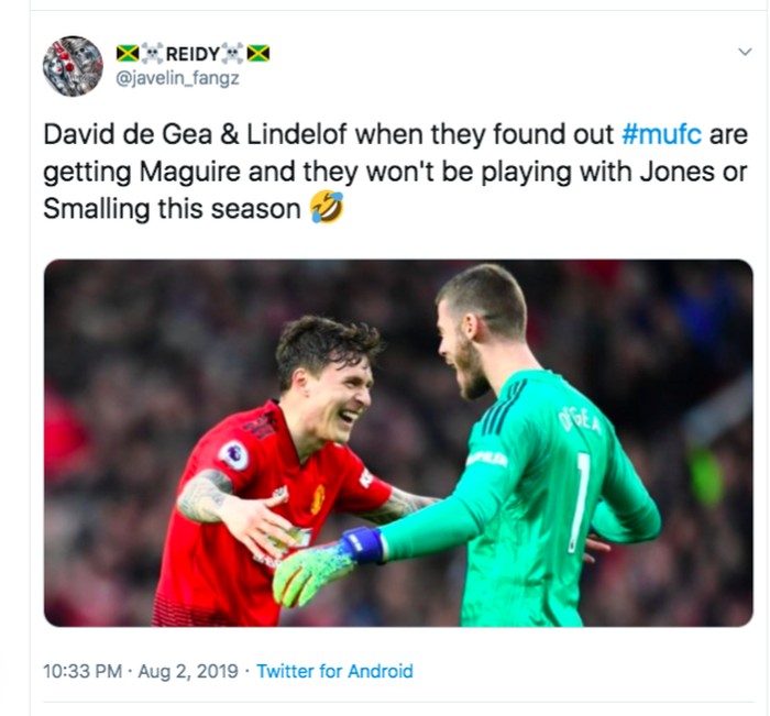 David de Gea dan Lindelof digambarkan senang setelah tidak lagi harus bermain dengan Jones dan Smalling berkat kedatangan Maguire. Foto: istimewa
