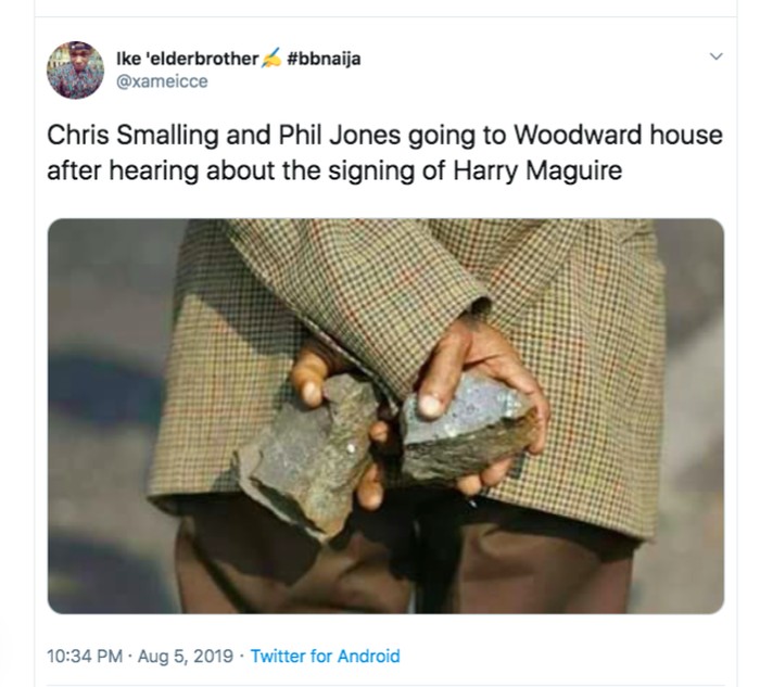 Phil Jones dan rekannya, Chris Smalling yang juga hampir pasti tersingkir, menyambangi kediaman Ed Woodward, eksekutif MU yang memuluskan transfer Maguire. Mereka membawa batu. Foto: istimewa
