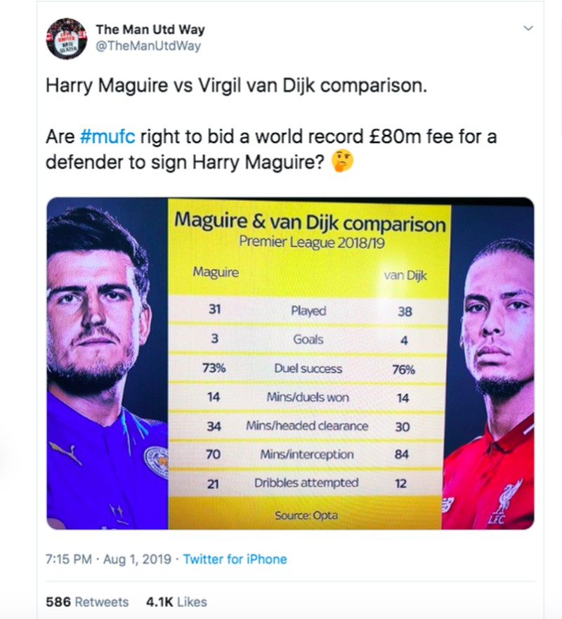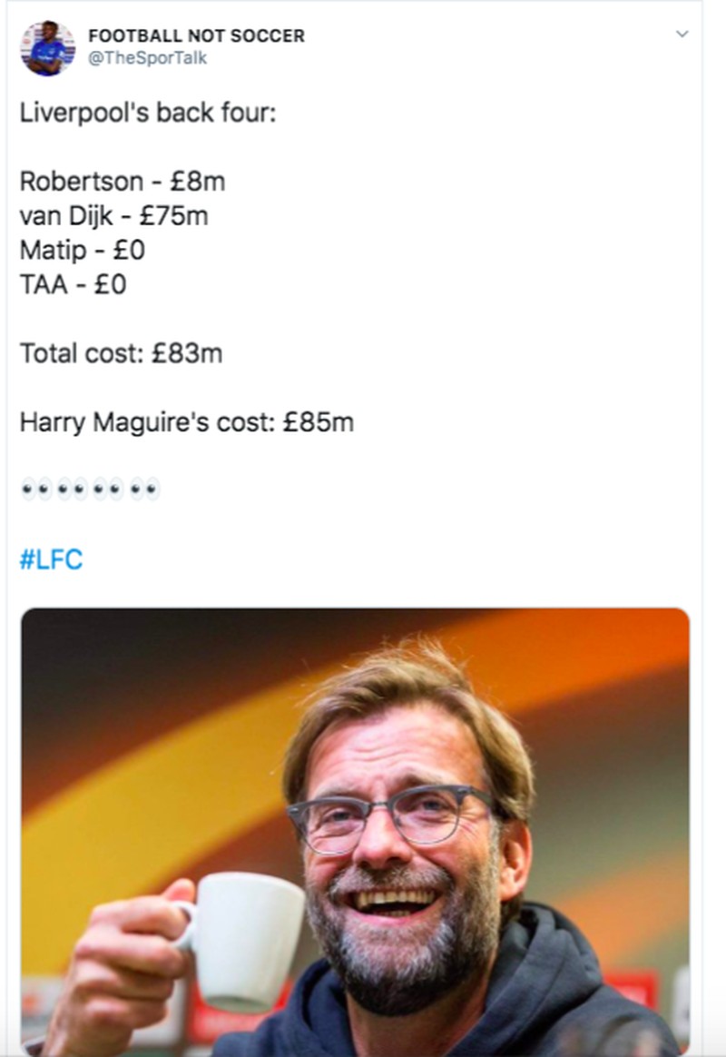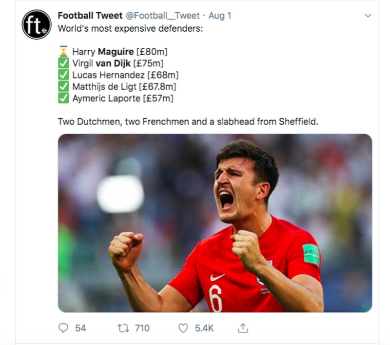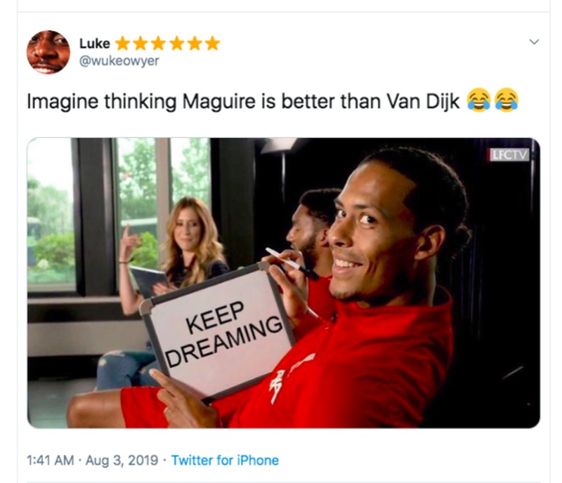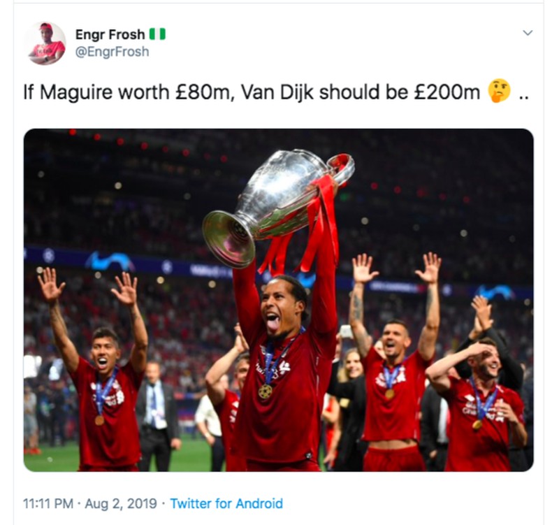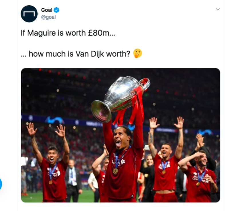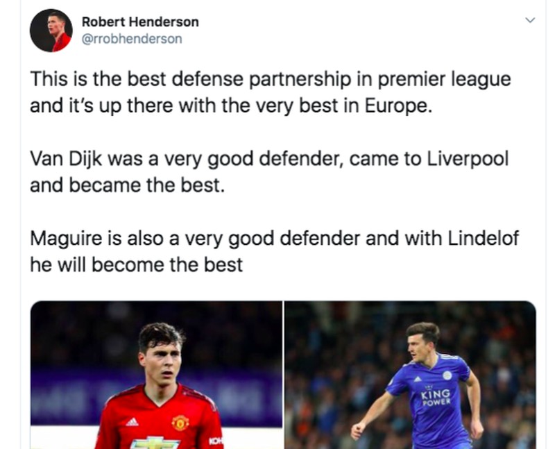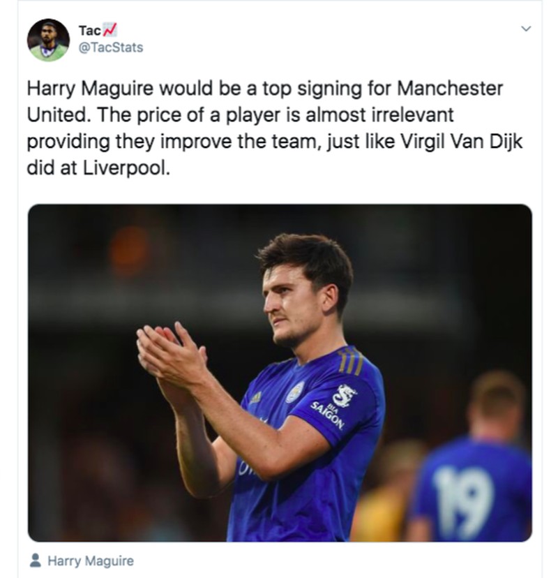 "Maguire akan menjadi pembelian top MU. Harganya hampir tak relevan karena ia meningkatkan tim, sama seperti Van Dijk di Liverpool," tulis netizen ini. Foto: istimewa