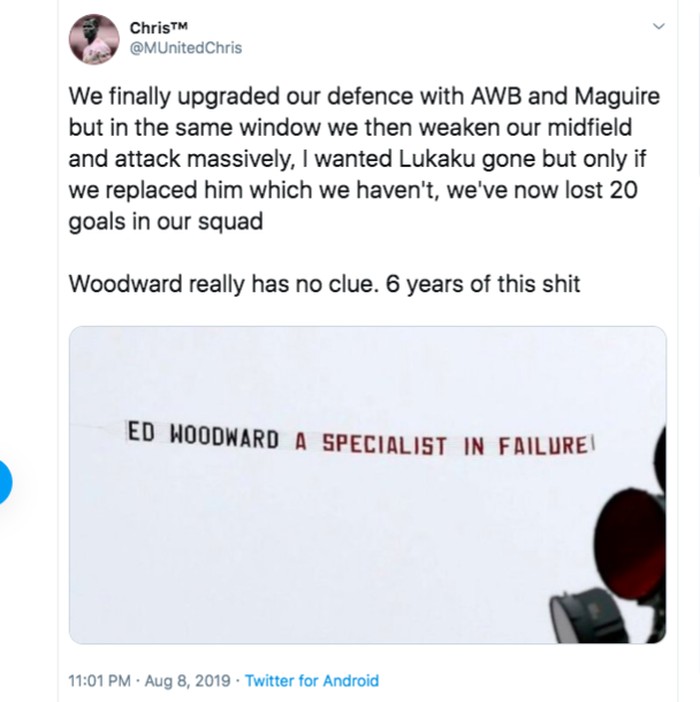 Hashtag #woodwardout menggema seiring kepergian Lukaku karena dia dianggap tidak becus di bursa transfer. Foto: istimewa